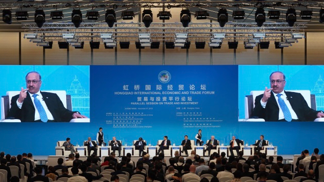2018年11月5日,上海,中國(guó)國(guó)際進(jìn)口博覽會(huì)。 沙特基礎(chǔ)工業(yè)副主席兼首席執(zhí)行官Al-Benyan在虹橋國(guó)際經(jīng)濟(jì)貿(mào)易論壇(Hietf)期間再...