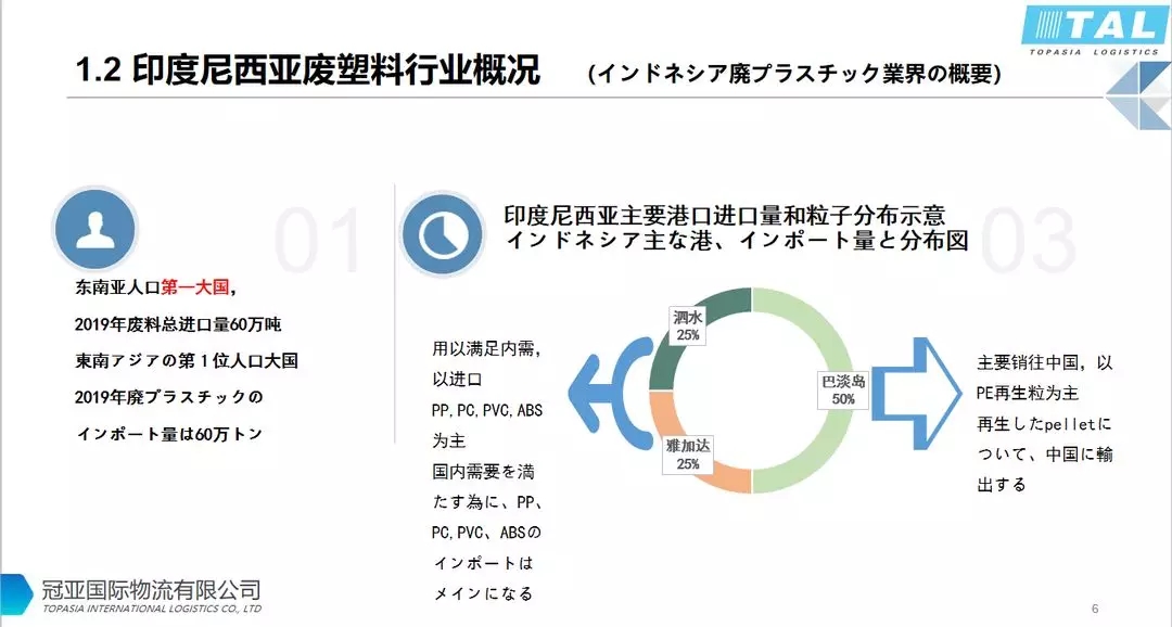印尼人口超過(guò)2億,是東南亞第一大人口國(guó)。進(jìn)口廢塑料主要港口是雅加達(dá),泗水,巴淡島;2019年廢料總進(jìn)口量約60萬(wàn)噸。