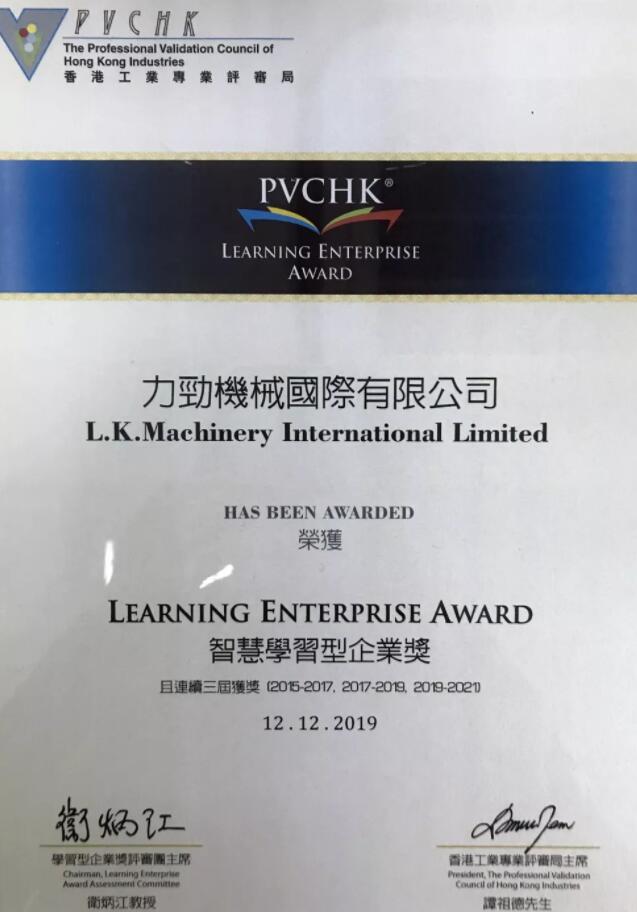 經(jīng)過自我評(píng)估、評(píng)審專員初評(píng)和獨(dú)立終審委員會(huì)專家的最終客觀審定,力勁集團(tuán)在“資源投入推動(dòng)人才培訓(xùn)”、“系統(tǒng)化管理人才發(fā)展”、“資訊科技應(yīng)用”、“策略運(yùn)用”、“企業(yè)文化”五個(gè)標(biāo)準(zhǔn)、五十項(xiàng)細(xì)節(jié)方面達(dá)到評(píng)審標(biāo)準(zhǔn),榮獲“2019智慧學(xué)習(xí)型企業(yè)獎(jiǎng)”。力勁集團(tuán)CEO劉卓銘先生、董事會(huì)主席張俏英女士出席頒獎(jiǎng)典禮。