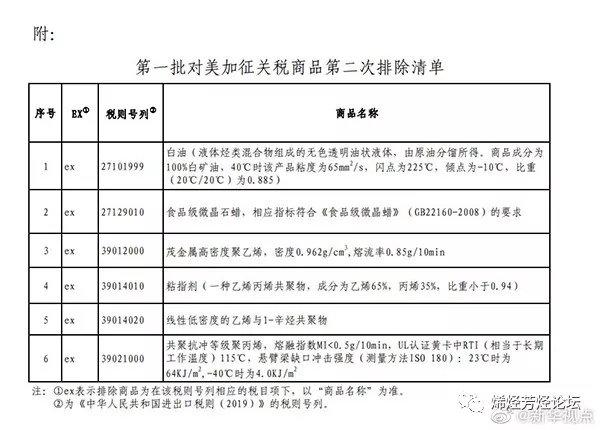 茂金屬HDPE、聚丙烯等6類化工產(chǎn)品不再加征進(jìn)口關(guān)