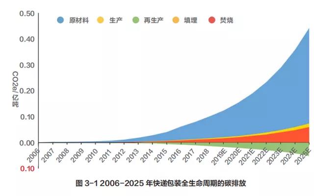 快遞包裝材料的組成特性及其生產(chǎn)工藝過程特征以及下游資源化回收和處置的全過程進行分析,并結(jié)合生產(chǎn)過程和廢棄階段等相關(guān)的資料數(shù)據(jù),運 用 LCA 并 遵 照 ISO14000 系 列 標(biāo) 準(zhǔn), 測 算了不同類型包裝材料和包裝方式在生命周期過程(包括原材料、包裝材料生產(chǎn)制造和回收處理階段)的碳排放因子(按單位重量作為功能單位),再結(jié)合某年快遞包裝材料消耗量估算了快遞包裝在全生命周期的年碳排放量。