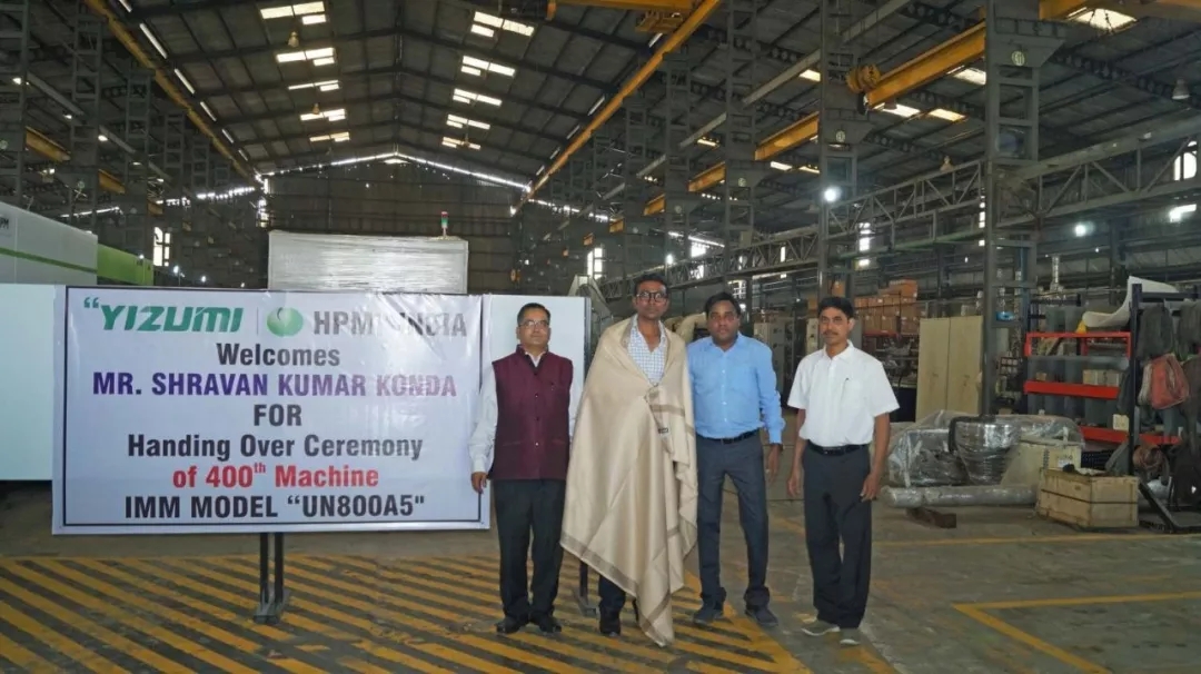 2019年12月25日,伊之密印度工廠生產(chǎn)的 UN800A5 注塑機(jī)成功交付給當(dāng)?shù)乜蛻鬝hriyan Polymers公司。這是印度子公司銷(xiāo)售的第400臺(tái)注塑機(jī)。伊之密在工廠內(nèi)舉行了一個(gè)簡(jiǎn)單而隆重的儀式,紀(jì)念這一里程碑。