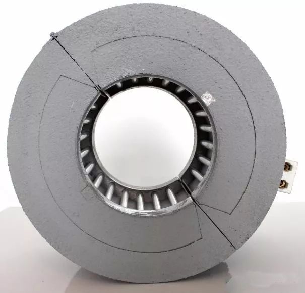 ????????傳統(tǒng)加熱圈通過(guò)接觸傳導(dǎo)方式把熱量傳遞到機(jī)筒,其中有一半的熱量散發(fā)到了空氣中;保溫型的紅外線加熱圈,發(fā)熱效率高,導(dǎo)向性的輻射可將熱量直接轉(zhuǎn)換成機(jī)筒上的溫度,避免熱量的散發(fā)。其外觀結(jié)構(gòu)如圖5、圖6、圖7。