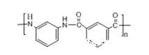 ????????英文名:Polyamide1313;Nomex;Nylon1313;簡(jiǎn)稱PA1313。間苯二甲酰氯和間苯二胺為單體進(jìn)行縮聚而得,其分子結(jié)構(gòu)式為: